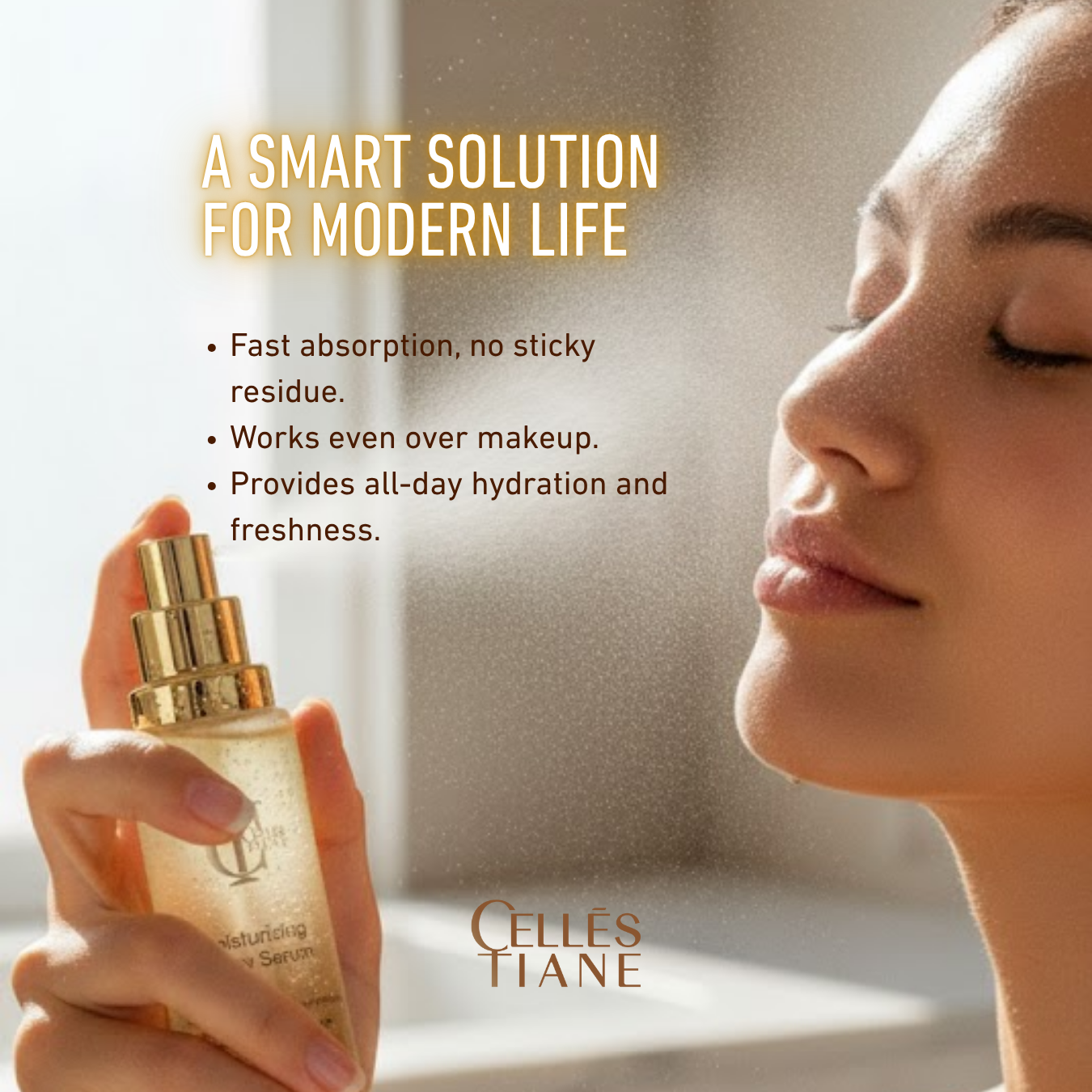 Developed with a focus on convenience and efficiency, it’s designed for people who want their skincare to adapt to their lifestyle — not the other way around. Whether at home, at work, or on the go, CELLES TIANE Spray Serum makes it effortless to keep your skin refreshed, hydrated, and beautifully healthy at all times.